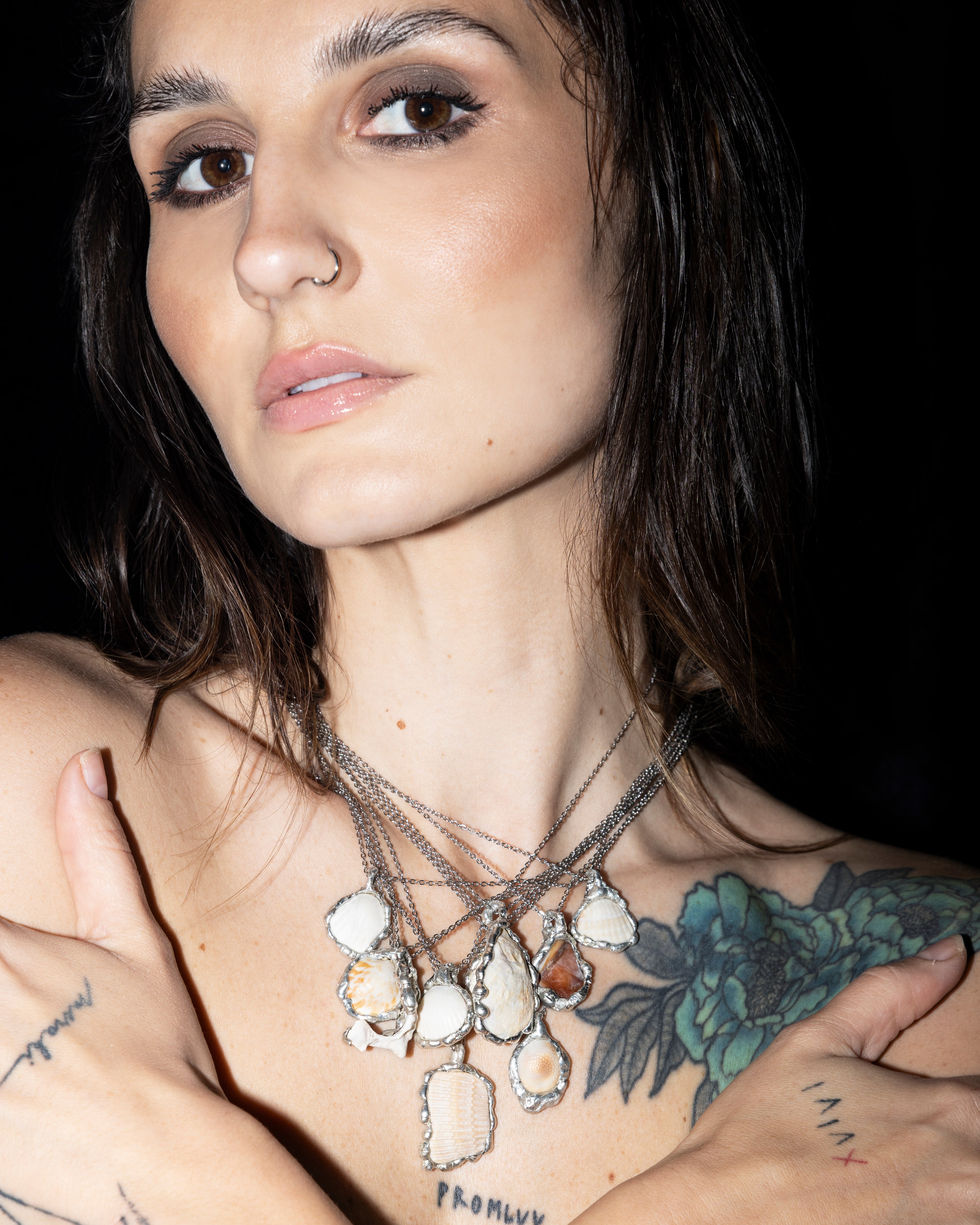 Observing broken shells and stones, this collection is a natural continuation of the previous Postmodern Mermaid collection. Finding beauty and fascination in imperfections on the materials' surfaces, like scars reminding us of the past.