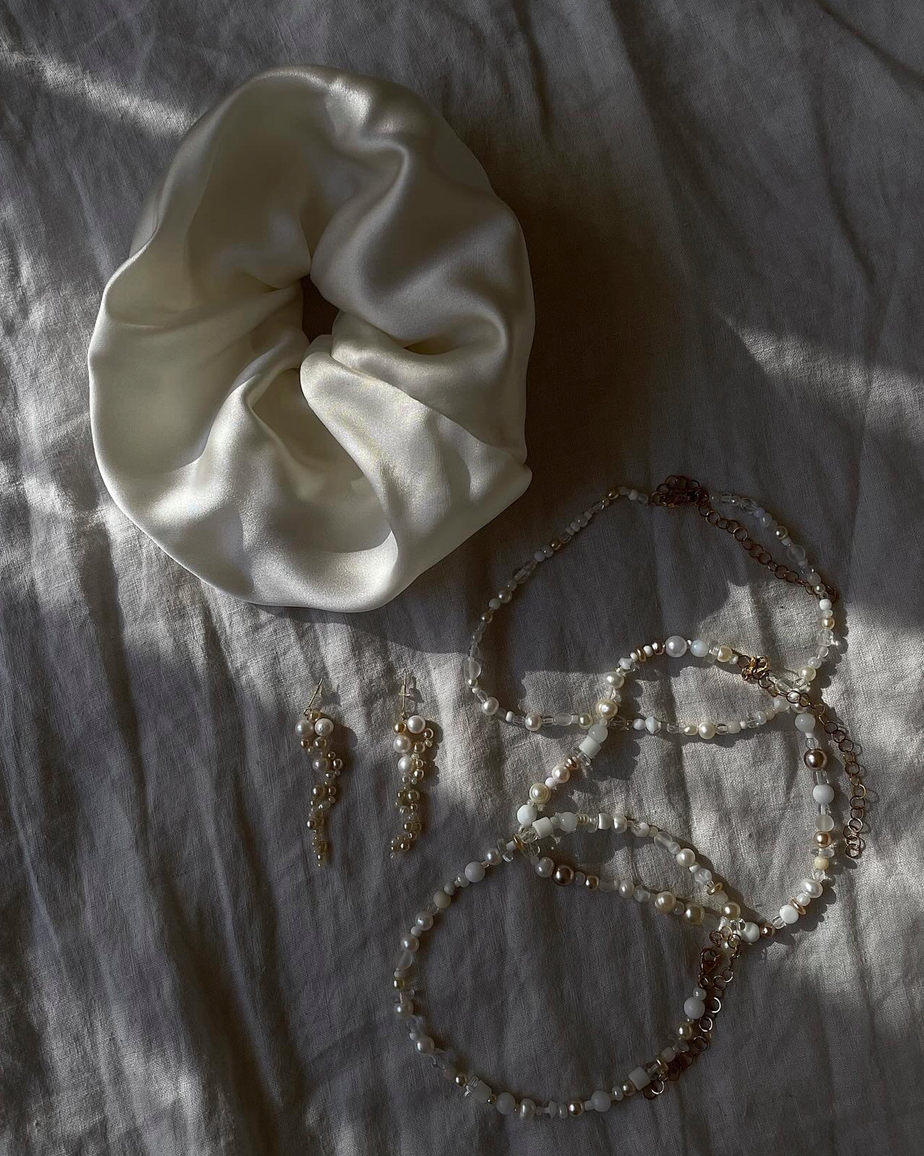 You can have your Kaaret custom wedding jewelry made to match your personality, mood, dress or the vision board you probably already have. I work with vintage, secondhand and deadstock materials, including freshwater pearls, silk and glass beads, which I combine with stainless steel components and other materials. Read on and discover the path to your ideal piece.