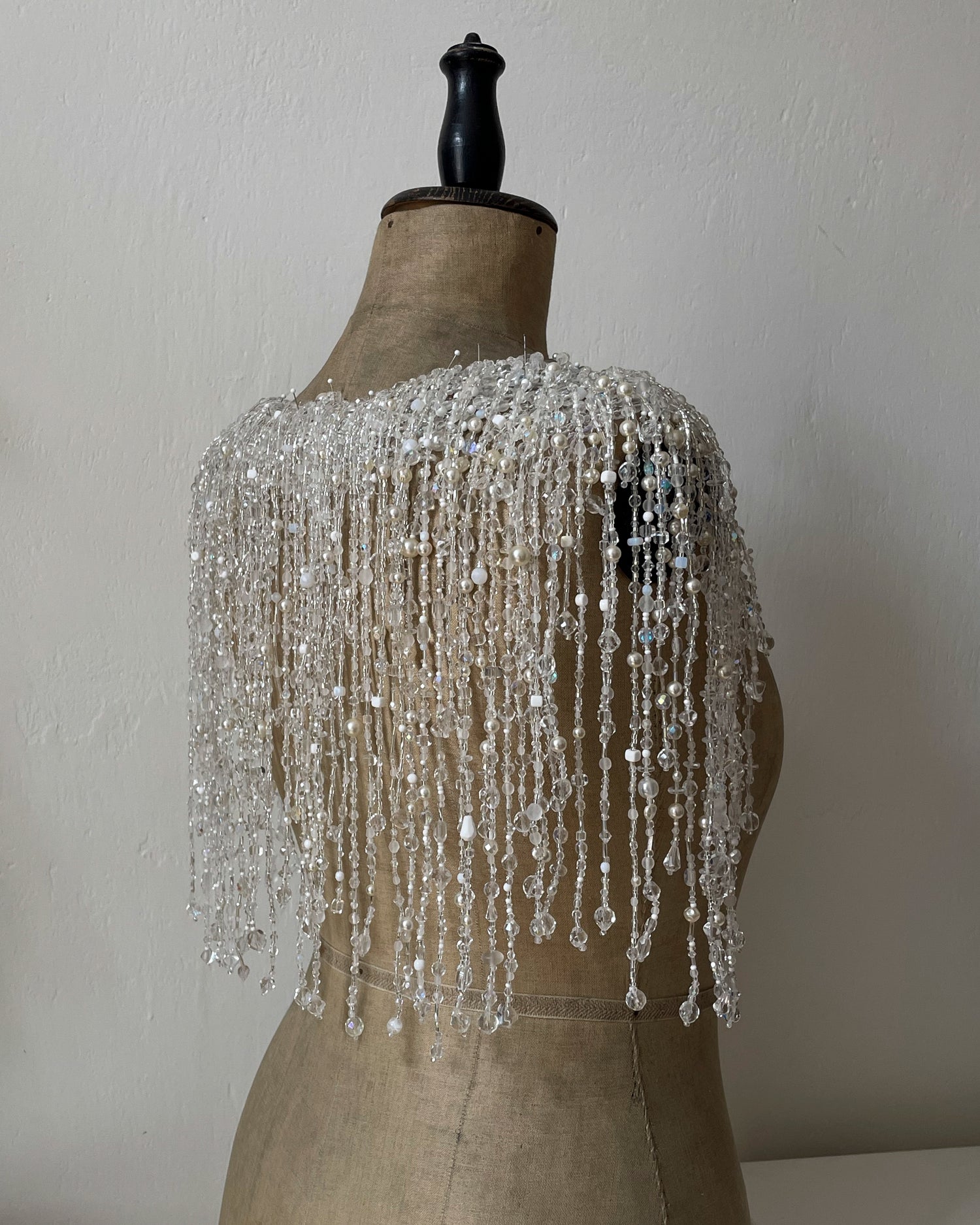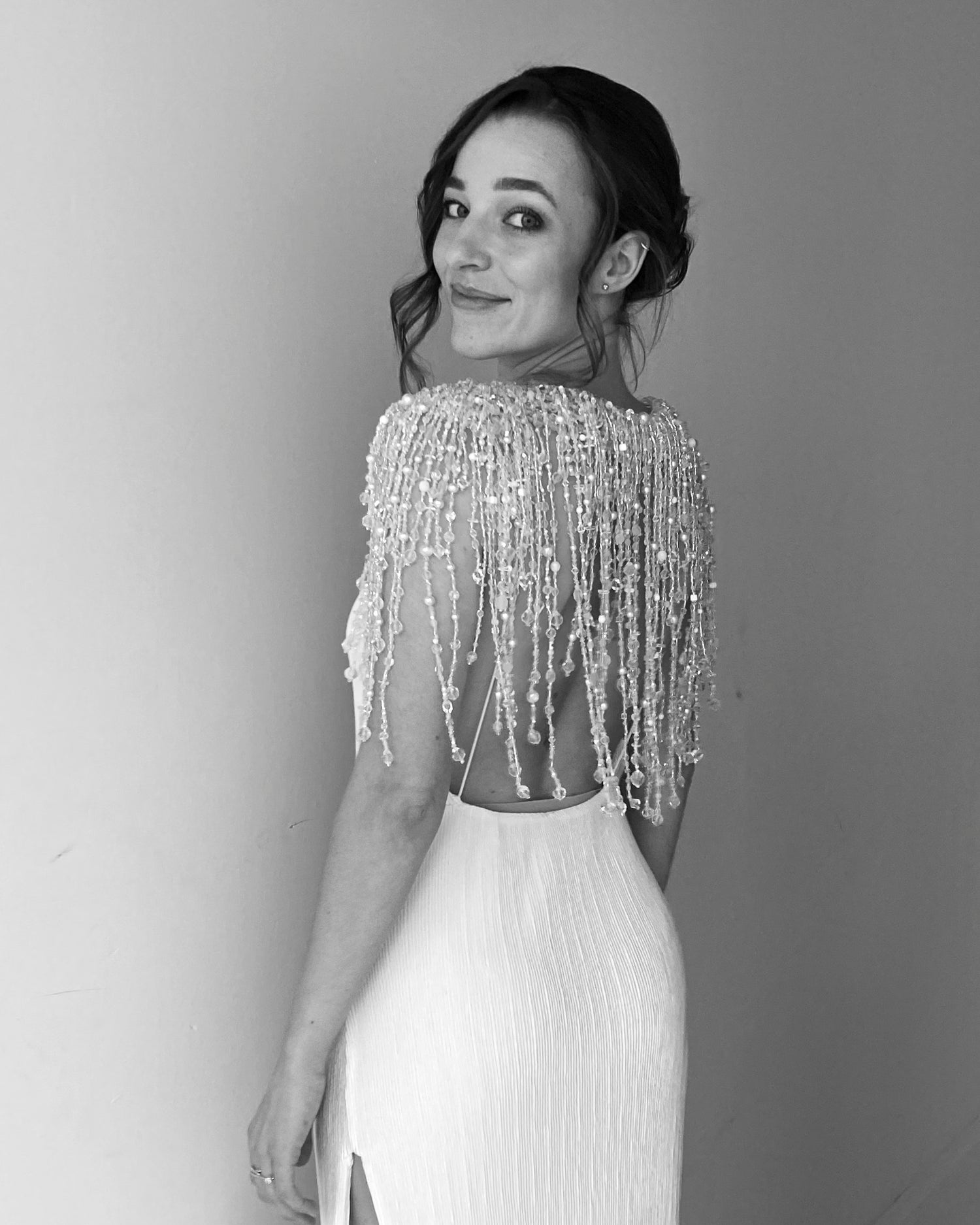 If your jewelry is a bolero jacket, body harness, or other complex piece, it is best to come for one final fitting — preferably with your wedding dress — to ensure everything fits perfectly. If it does, you will leave with your wedding jewelry that day. If not, I will do the last touch-ups and let you know when it is ready.