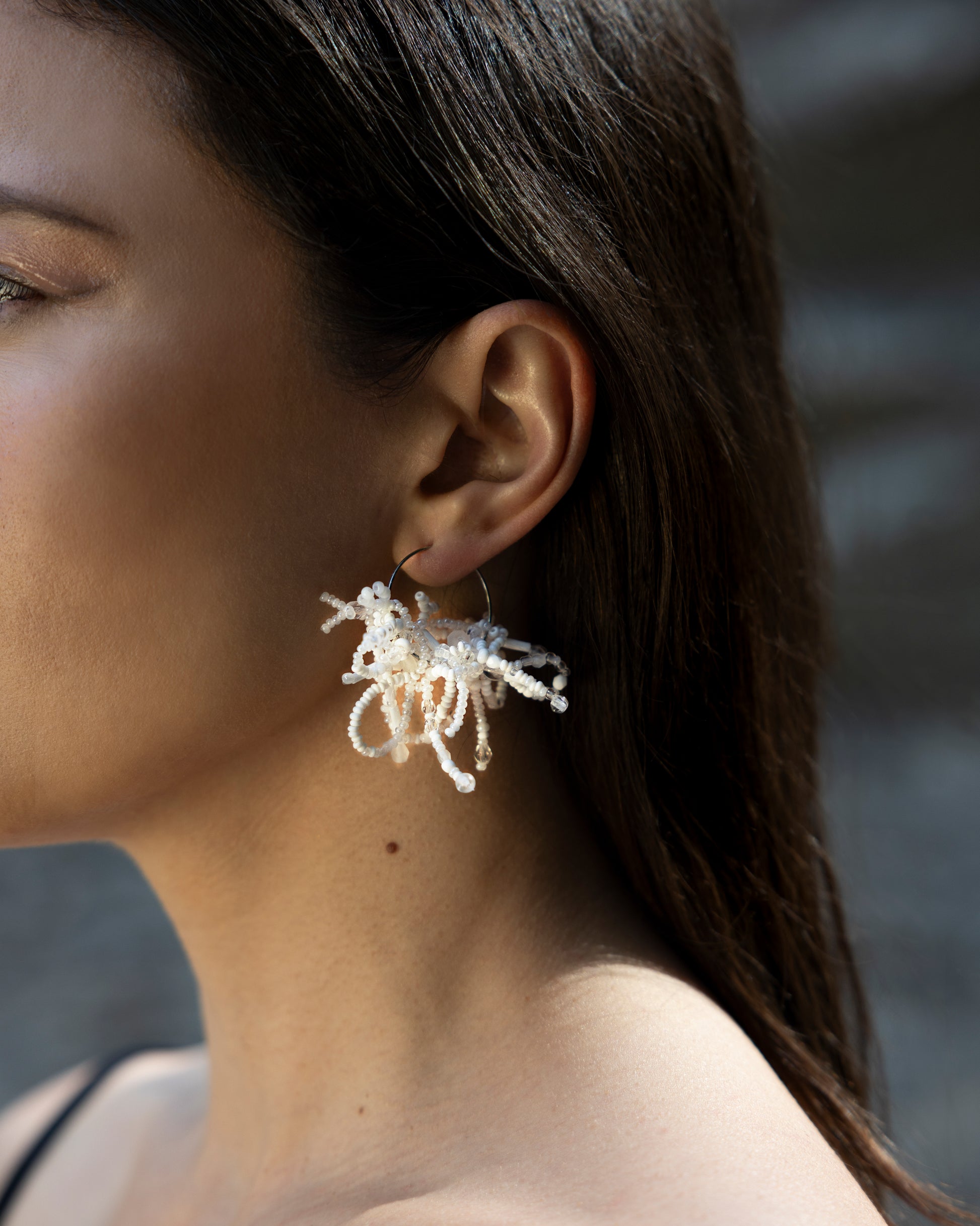 Statement hoops with deadstock glass beads finished with stainless steel components.